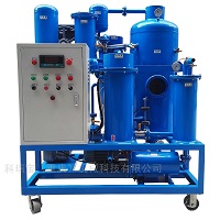 蒸发的水蒸汽、气体所形成的混合气体通过水箱和冷却器冷凝成液体,一同进入储水器,剩余的气体被真空抽出。除去水分的油液被排油泵输入精滤器除去微粒杂质,即为净化油,完成一个净化过程,根据含水量的多少,须多次循环才能*除去水分。